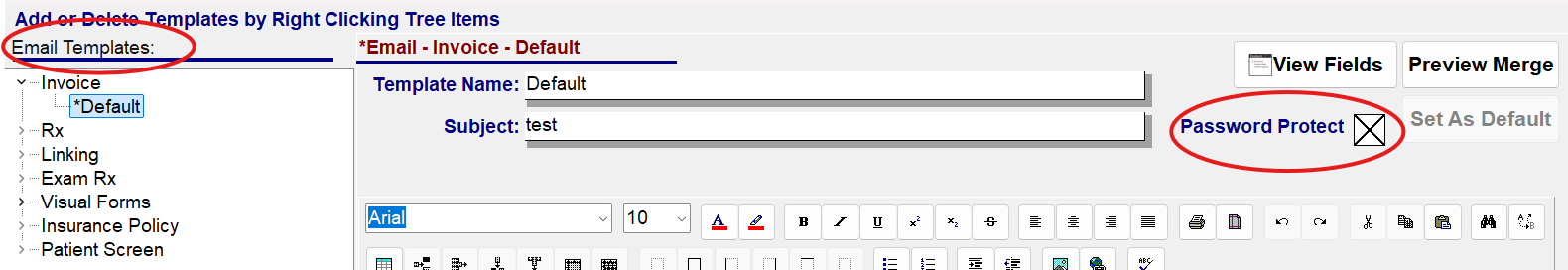 Adding passwords to your emails and faxes to patients in Visual-Eyes