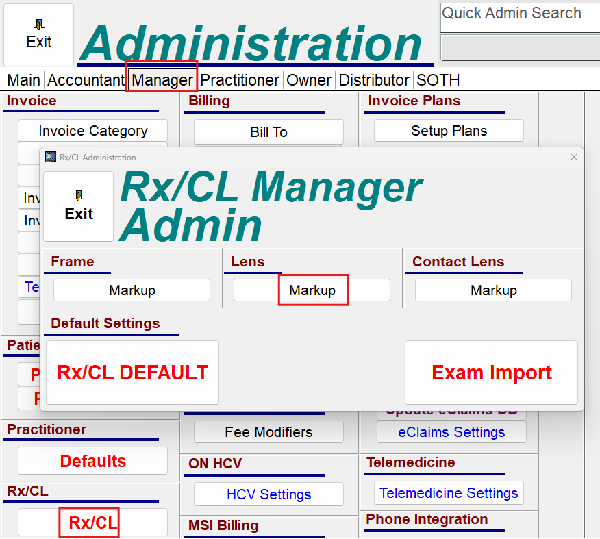 VE Admin > Manager > Rx/CL > Lens Markup.