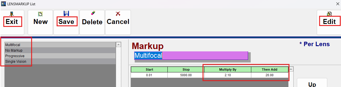 When setting the price range for the Markup do not set the start price to $0. This may cause an issue on the Rx Order screen if the Lens gets discounted or part of a promo price. Please use $0.01 as the start.